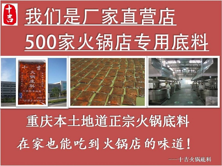 十吉火锅底料,正宗重庆火锅店专用底料,开店批发。30年底料生产经验。100种配方任由您选。